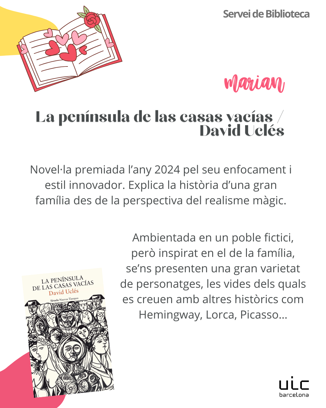 Avui, diada de Sant Jordi, un dia on es respira a l'ambient l'aroma a roses 🥀� i llibres 📚�. Un dia molt especial per a qualsevol amant de la literatura i els llibres, i per aquesta raó, l'equip de Biblioteca us volem recomanar uns títols per si encara no sabeu quin llibre agafar en préstec o bé, no teniu clar quin llibre regalar. Sigui com sigui, desitgem que us siguin d'utilitat aquestes recomanacions. Amb quina us quedaríeu? Recordeu que teniu totes les recomanacions i més títols al portal de llibres electrònics, enllaç a la bio ⬆️ Us convidem a donar una ullada al carrusel de "Sant Jordi 2025" o "Literatura". Què gaudiu de la lectura i bona diada de Sant Jordi! ❤️