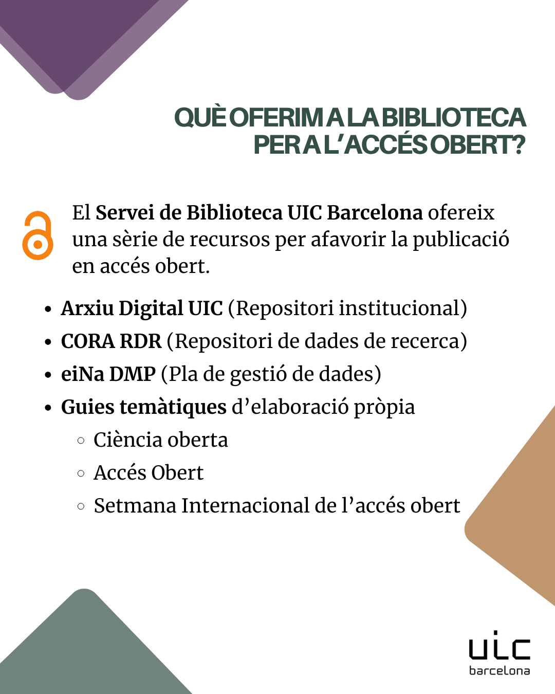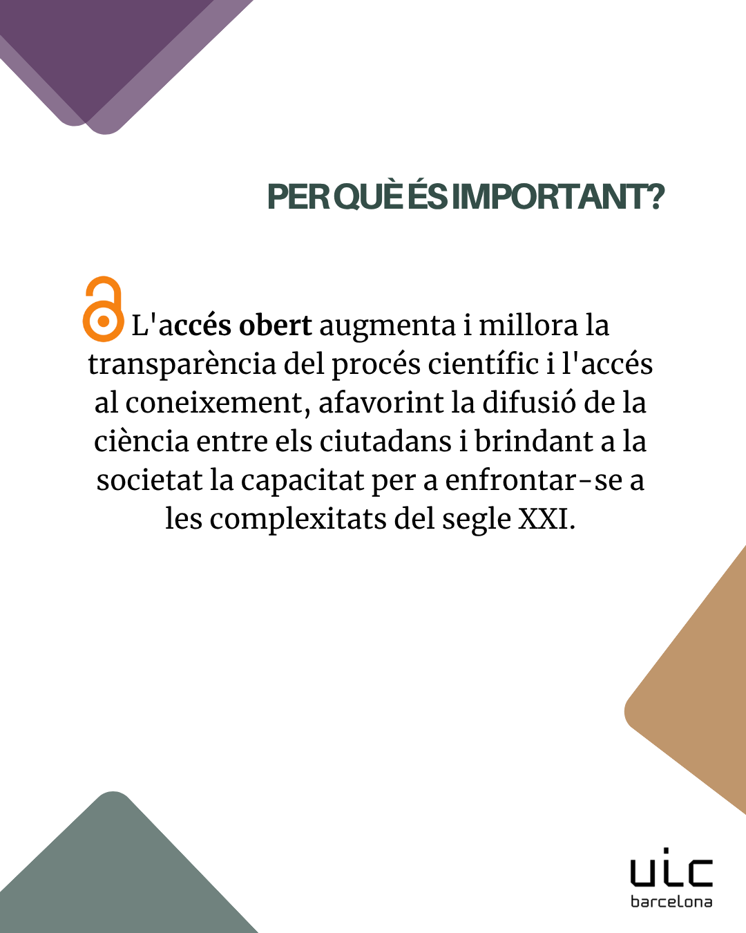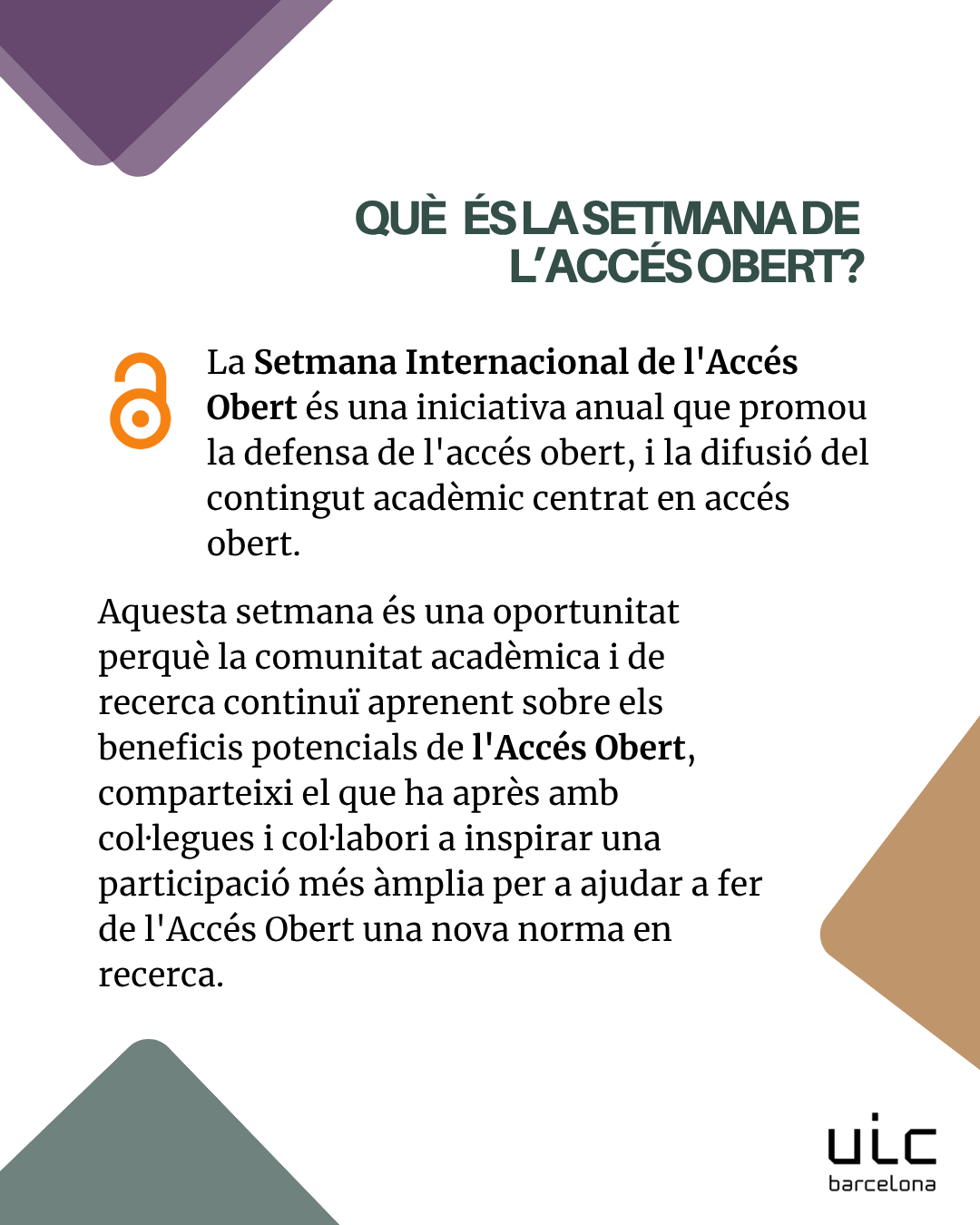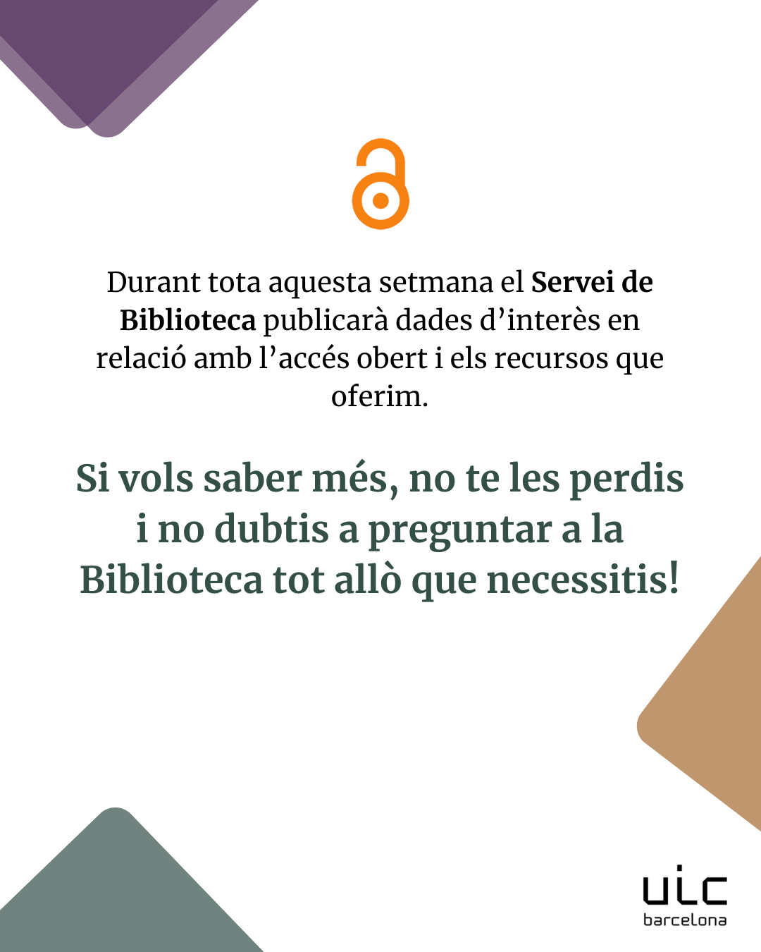 “Qui posseeix el nostre coneixement?” És el tema de la Setmana Internacional de l'Accés Obert d'enguany (del 20 al 26 d'octubre). Des de la Biblioteca UIC Barcelona volem formar part d'aquest moviment i mostrarem en els següents dies temes relacionats amb l'accés obert i els recursos que oferim des de Biblioteca. Avui iniciem amb "Què és l'accés obert i la seva importància".
