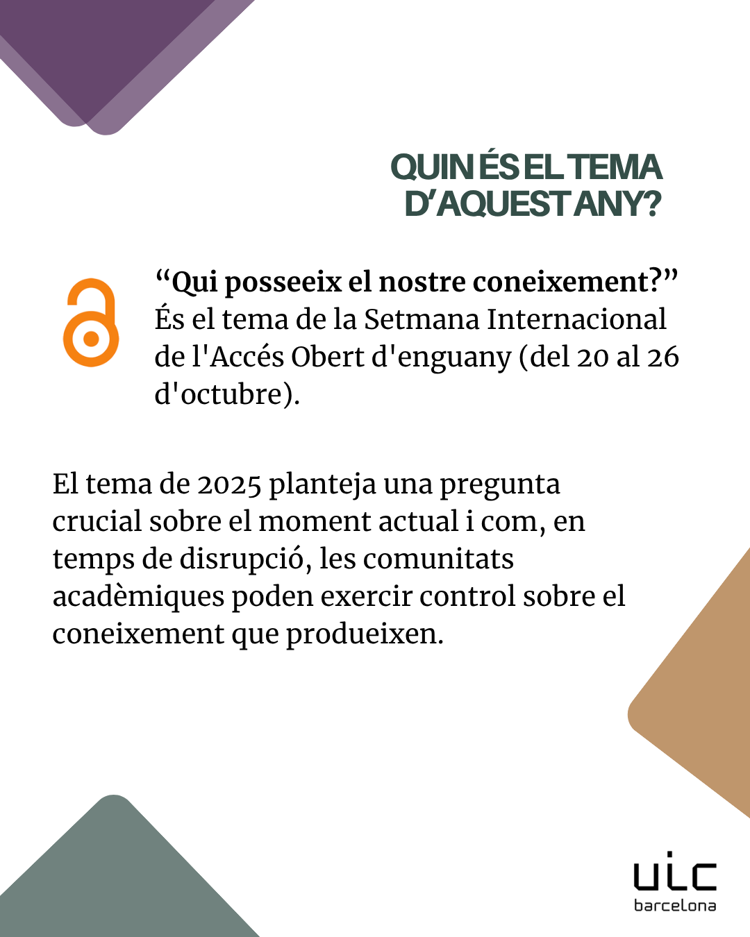 Open Access Week 2025: "Qui posseeix el nostre coneixement?"