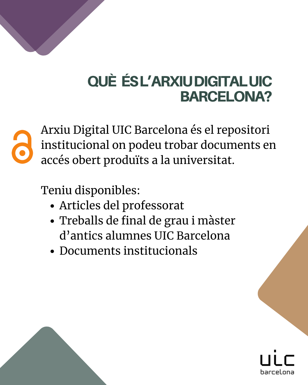 Comencem i aprofitem l'ocasió per difondre el nostre Arxiu Digital UIC Barcelona, un espai on compartim la producció científica produïda a la nostra universitat. També es poden consultar treballs d'antics alumnes i documents institucionals. Us recomanem que li doneu un cop d'ull! Qualsevol dubte sempre podeu preguntar al taulell o escriure a repositori@uic.es
